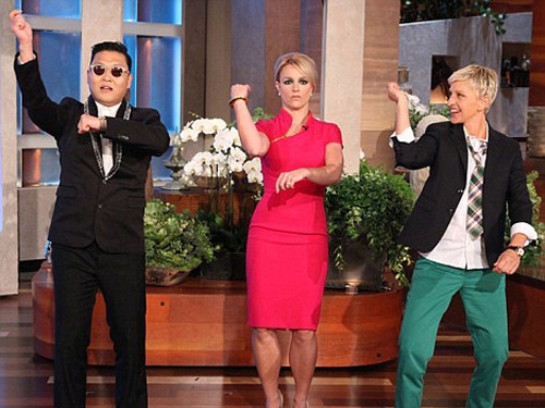 | Ellen trong một talk show giới thiệu điệu nhảy Gangnam Style. |
