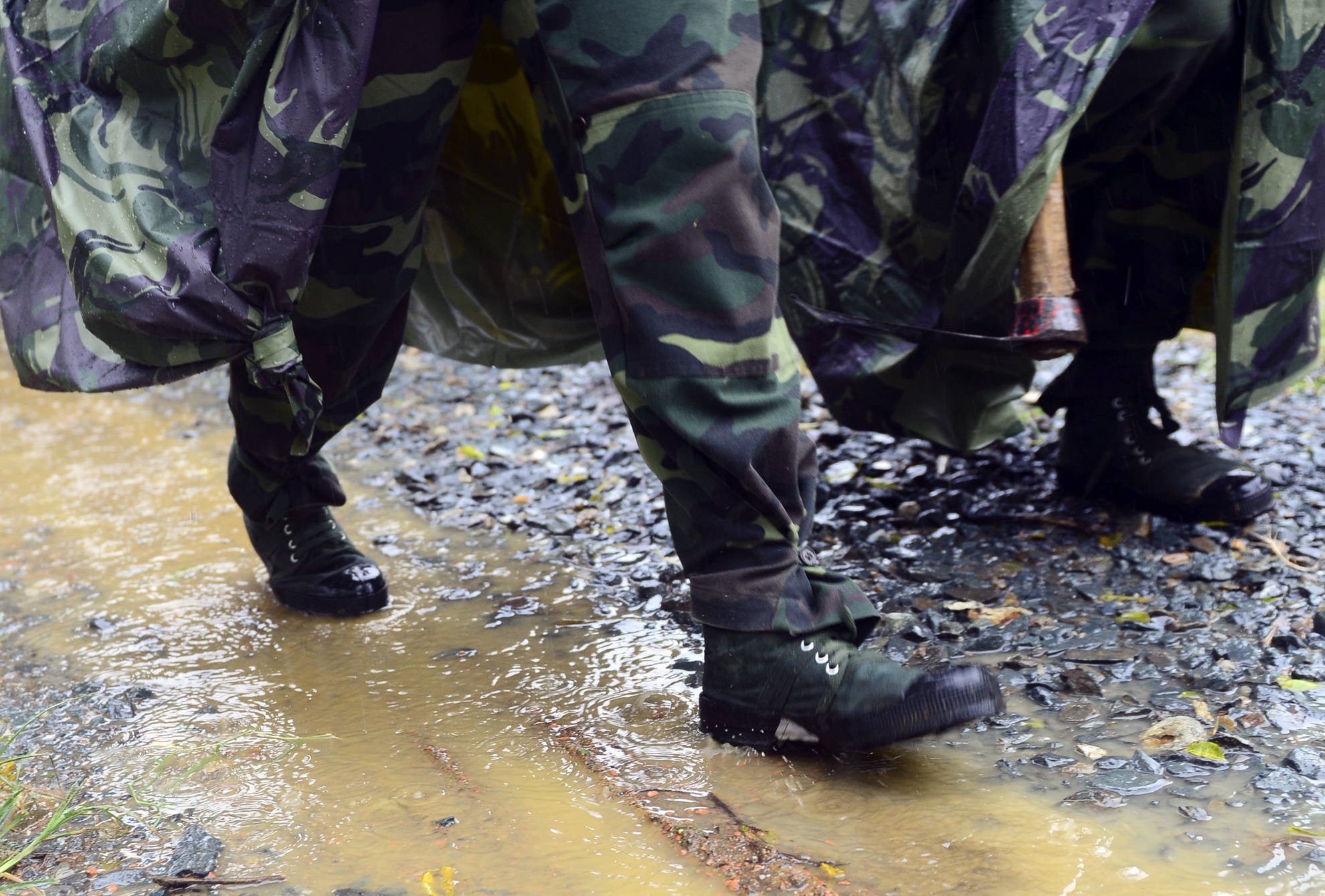 hành quân dưới mưa
