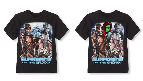 | Áo phông Guardians of the Galaxy thiếu vắng nhân vật Gamora – nữ anh hùng quan trọng không kém Groot hay Star-Lord. |