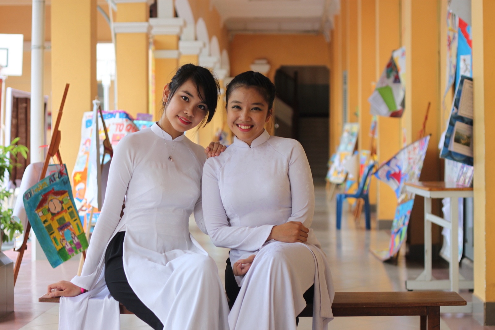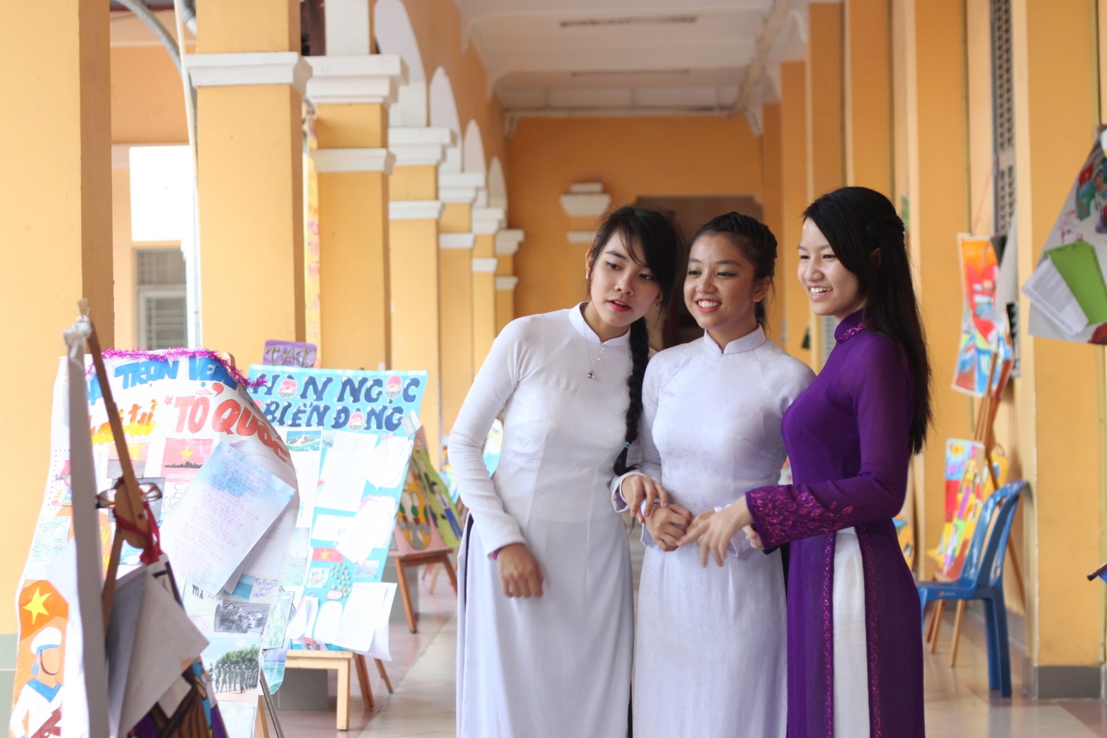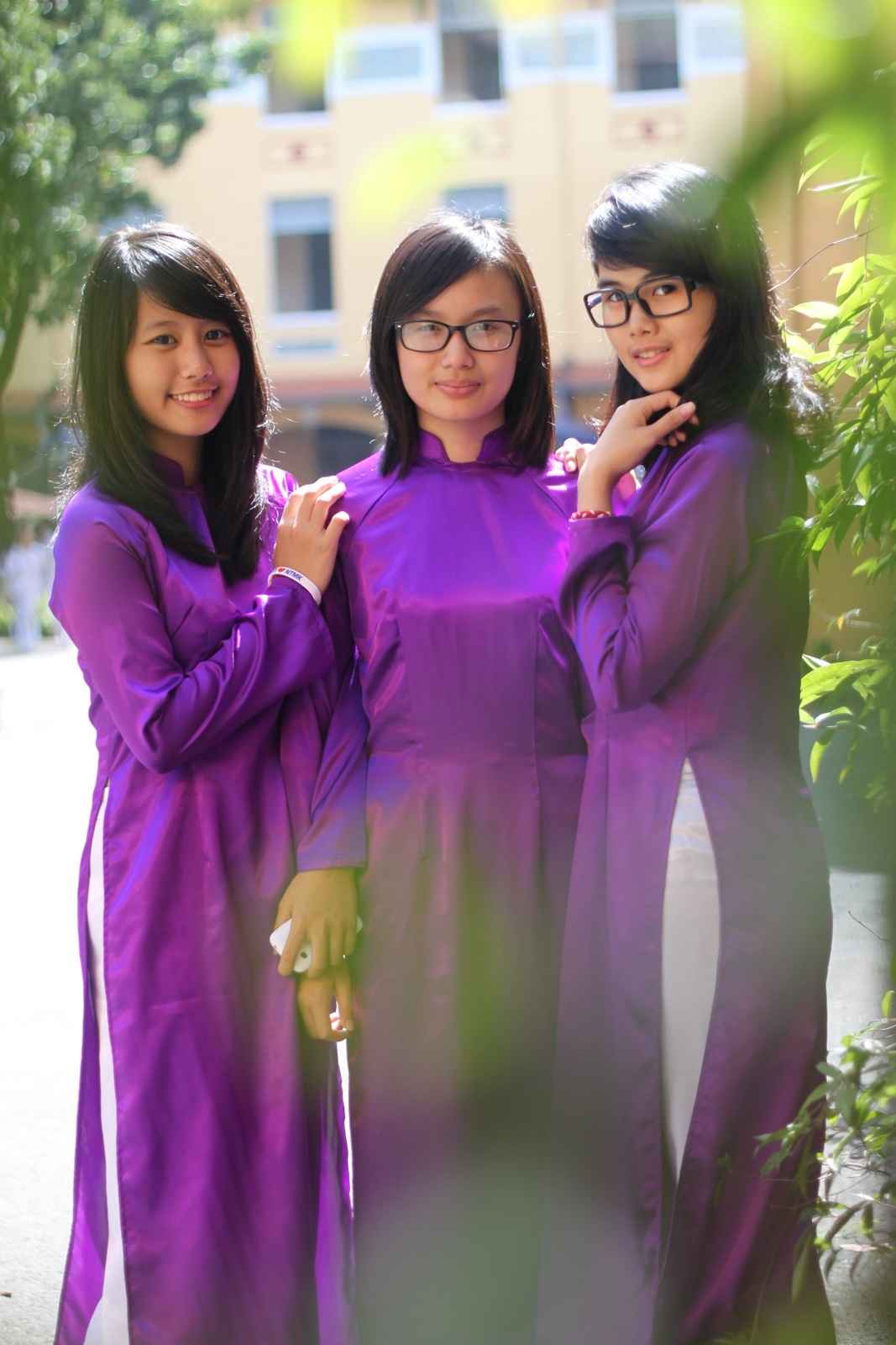 | Một nữ sinh chia sẻ: "Được mặc chiếc dài tím lên người em thấy rất tự hào về ngôi trường giàu truyền thống mình theo học". |