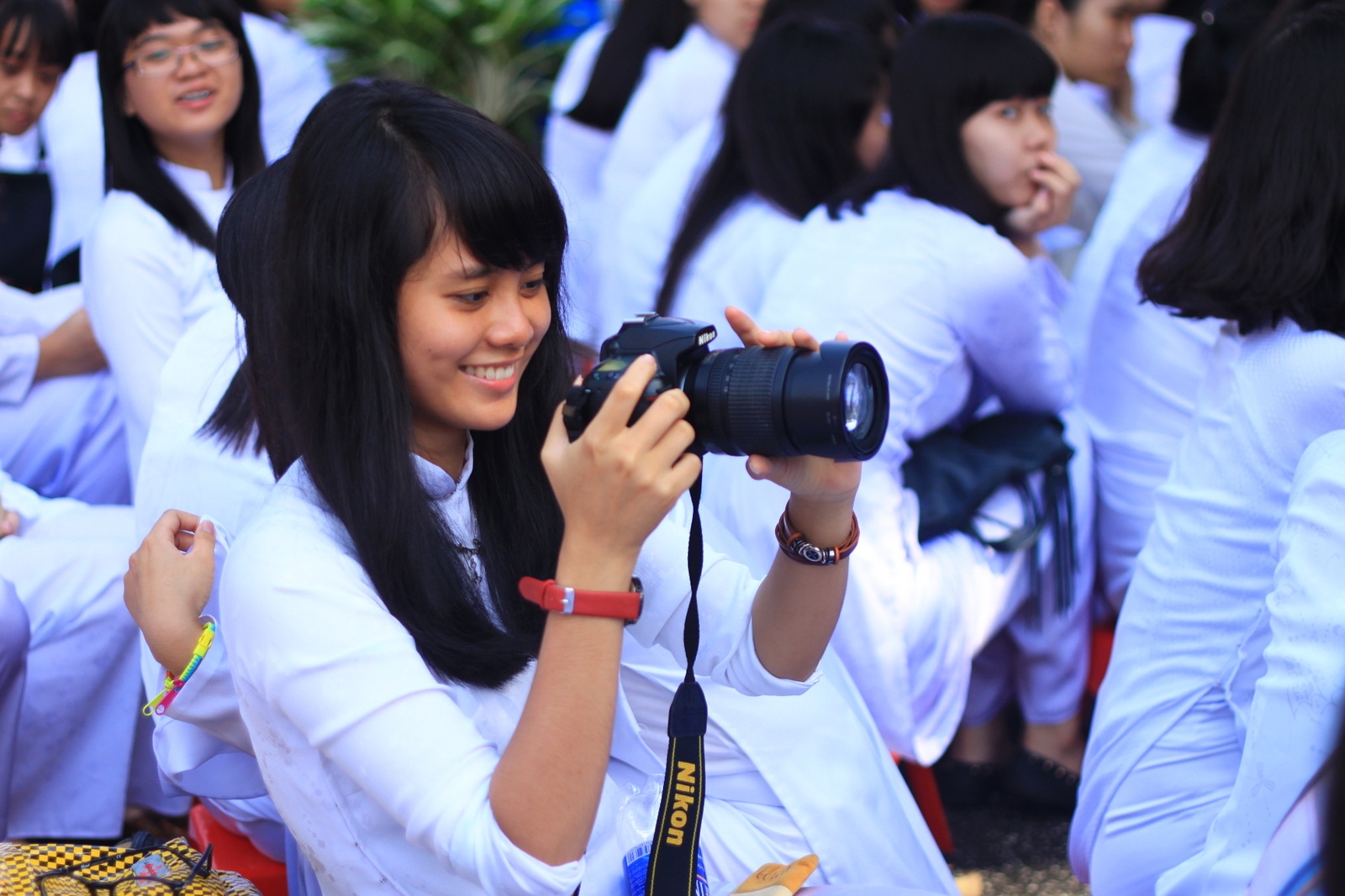 | Một nữ sinh thích thú xem lại những bức hình mình chụp. |