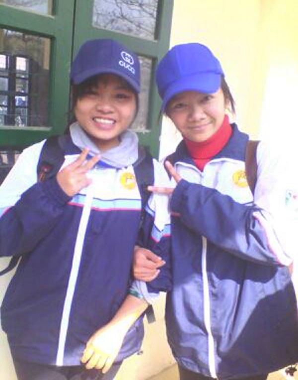 | Nguyễn Thị Anh (bên trái) chụp chung với bạn học cùng lớp. |