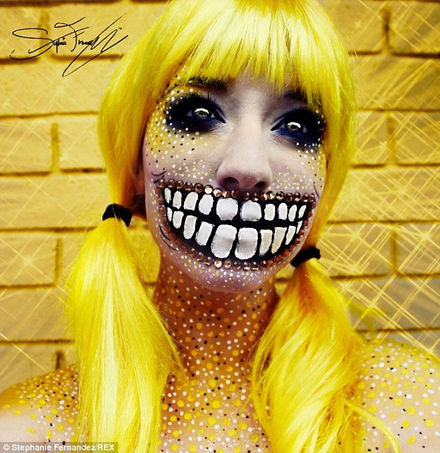 | Tuy luôn make up thành những hình tượng rùng rợn nhưng Stephanie vẫn luôn đầy màu sắc rất nổi bật. |