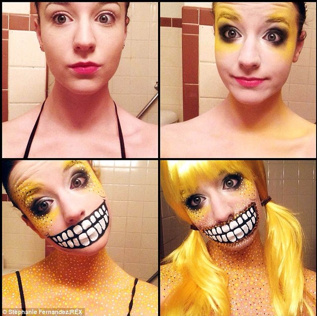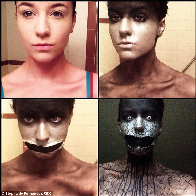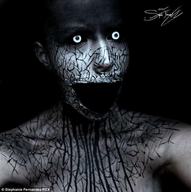 | Cô gái này thích tạo hình thành những hình ảnh đáng sợ như ma quỷ. Những bức chân dung sau khi trang điểm của Stephanie khiến nhiều người phải bất ngờ và kinh ngạc. |