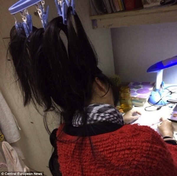 Để có thể học đêm, trước đó Chen cùng bạn đã thực hiện rất nhiều cách như uống cà phê, cho gió quạt thổi vào mặt… nhưng đều không mấy hiệu quả. May thay, Chen đã tìm ra được một cách rất đặc biệt - đó là buộc tóc của mình ngược lên trần nhà.