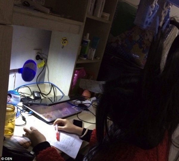 Chen Tang cho biết, cô và người bạn cùng phòng - Huang Lu (21 tuổi) do ban ngày phải vật lộn với bài vở ở trường, nên đêm không còn đủ sức để ôn thi. Cơn buồn ngủ luôn là nỗi ám ảnh của các cô mỗi khi bước vào bàn học.
