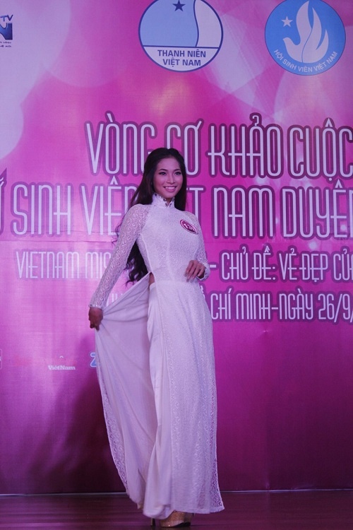 SBD 55 Đỗ Tố Ngân, sinh viên Đại học Bình Dương. Ngân trình diễn áo dài thướt tha trên sân khấu.