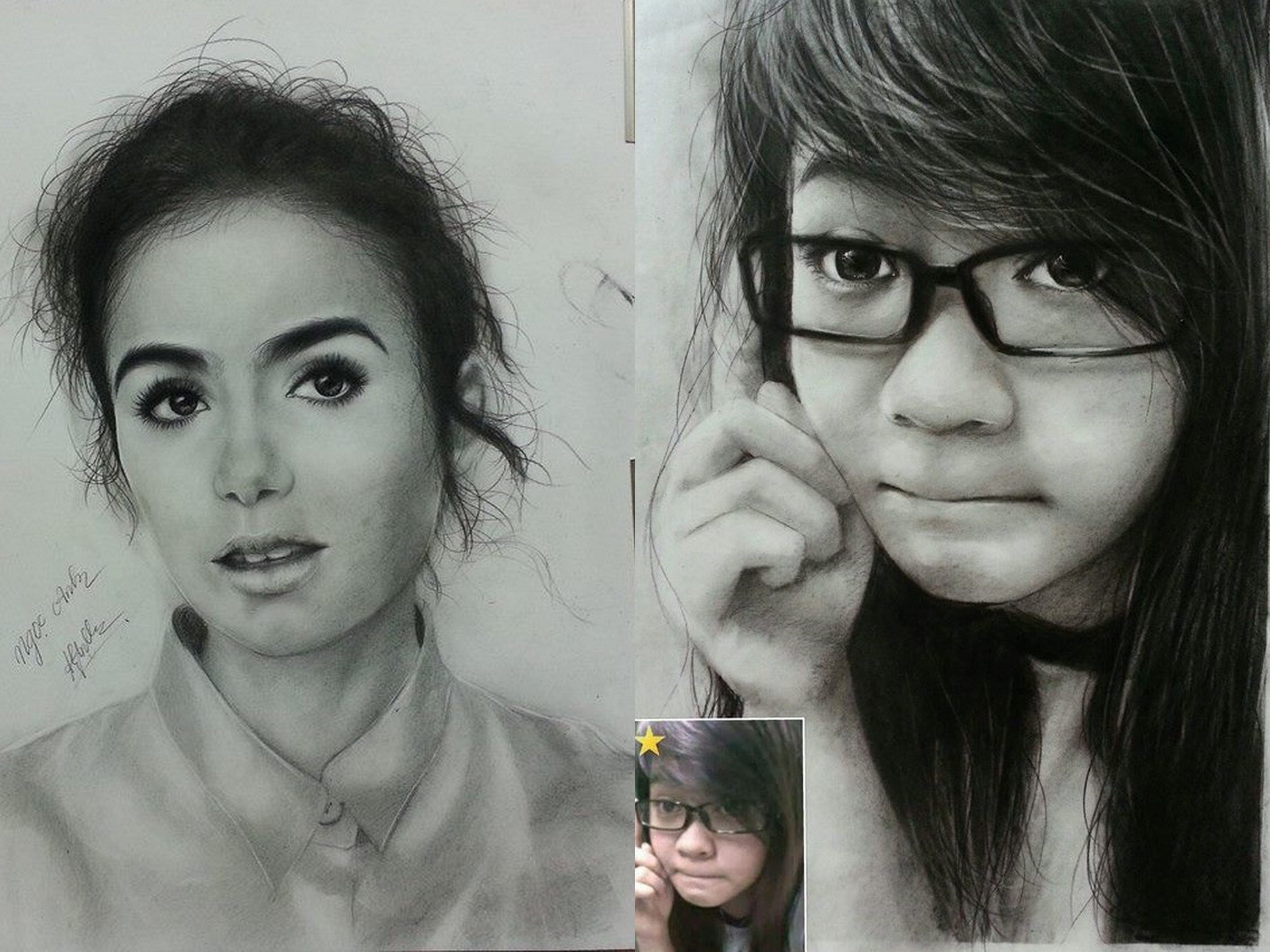 | Các tác phẩm chân dung bằng chì do Ngọc Anh thực hiện.(Ảnh: Nhân vật cung cấp). |
