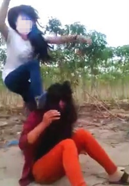 | Thiếu nữ đánh ghen giùm bạn. Ảnh cắt từ clip. |
