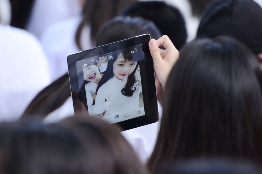 | Nữ sinh tạo dáng chụp ảnh, lưu giữ lại những khoảnh khắc đẹp. |