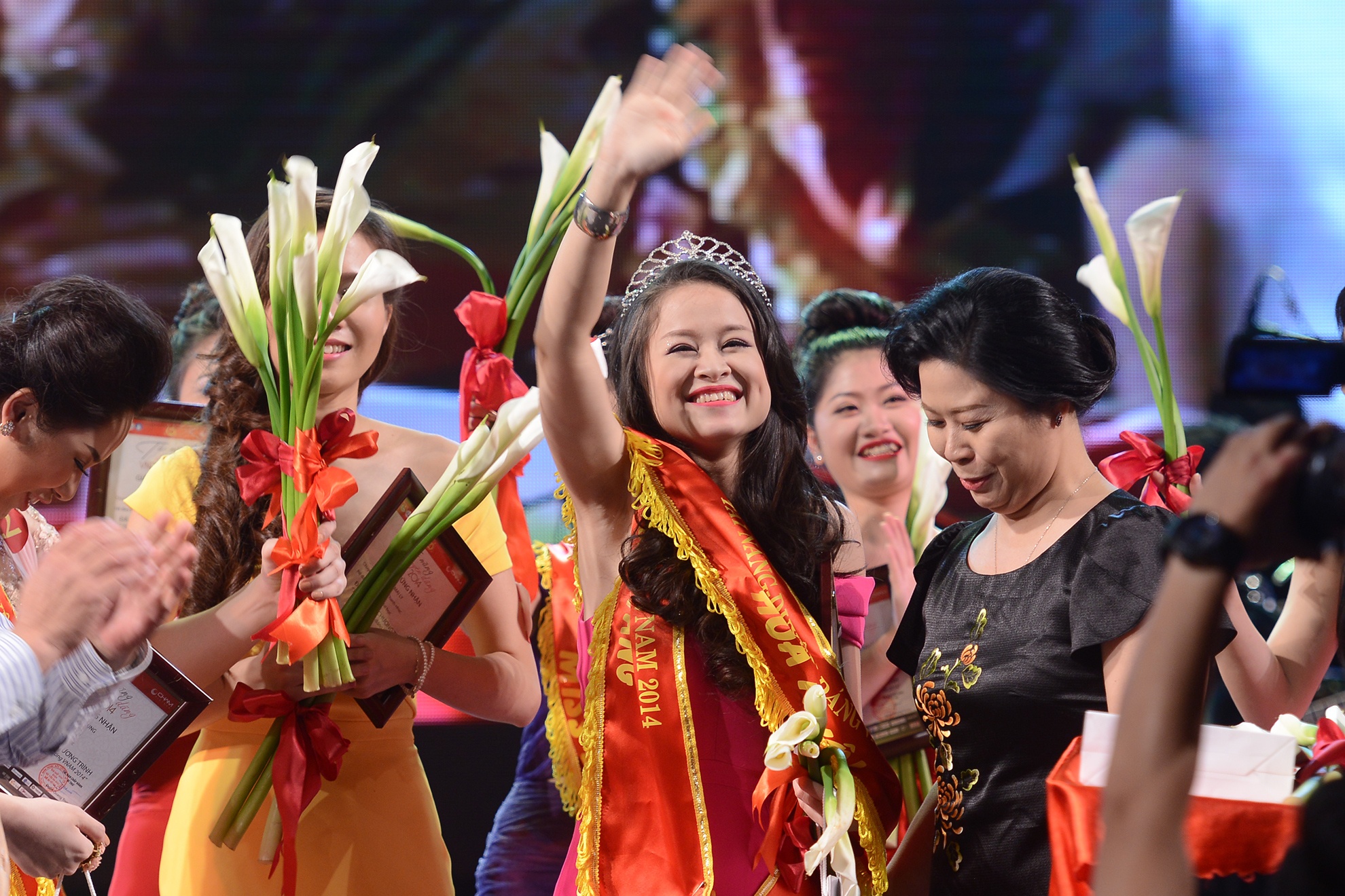 | Nữ sinh Lê Mai Ly, quán quân của của cuộc thi, hạnh phúc trong giây phút đăng quang. |