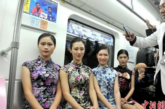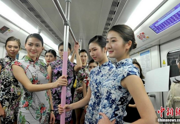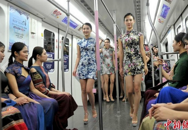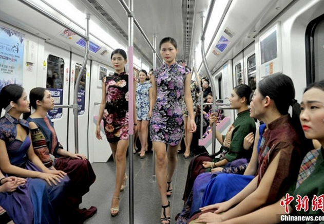 | Những bộ trang phục độc đáo được biểu diễn trên tàu điện. |