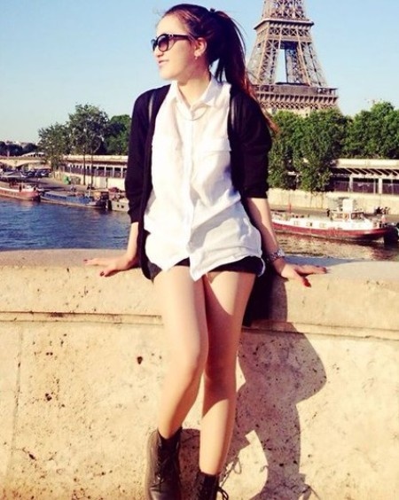 | Phương Ngân là sinh viên năm thứ hai tại Học viện Đào tạo Kĩ thuật Trang điểm Paris, Pháp. |