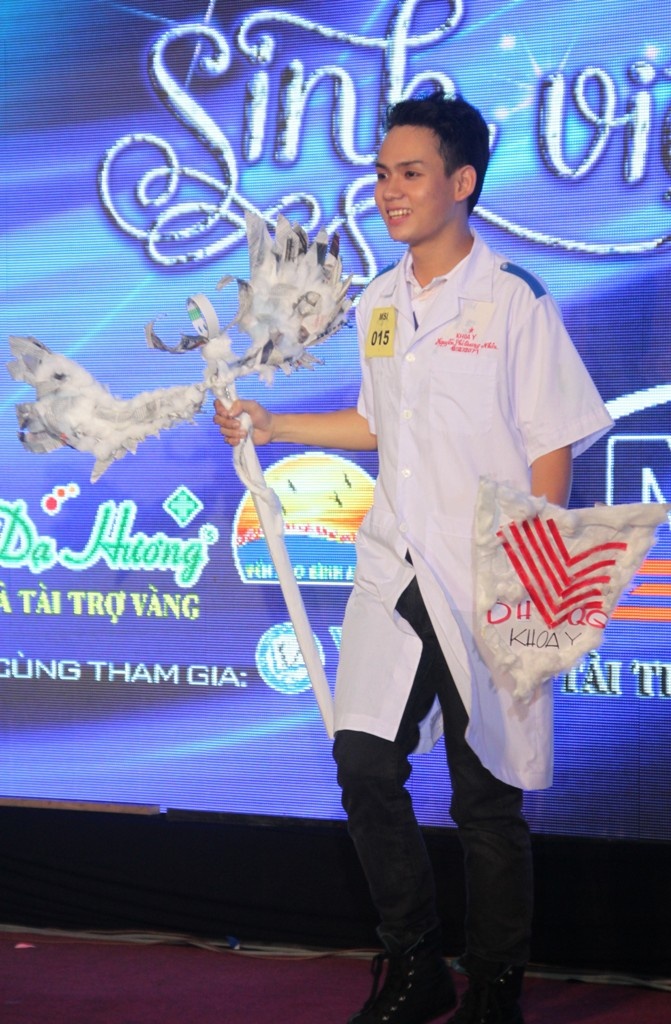 Những nữ sinh trường y đã thể hiện nét duyên dáng, sự tin tin khi trình diễn thời trang ao blouse trắng cách điệu trên sân khấu.