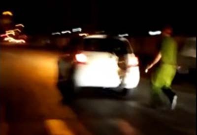 | Chiếc ô tô bỏ chạy khỏi hiện trường. Ảnh: Cắt từ clip. |