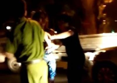 | Xuân hành hung, lăng mạ cảnh sát giữa đường. Ảnh: Cắt từ clip. |