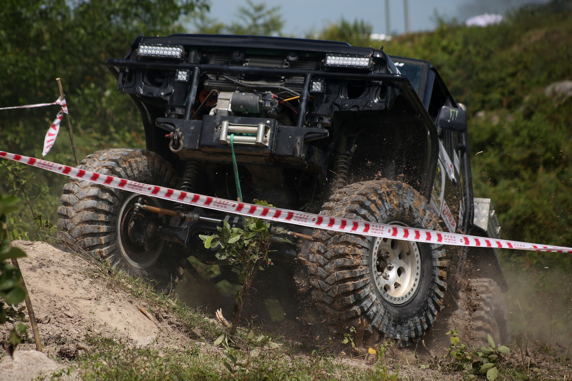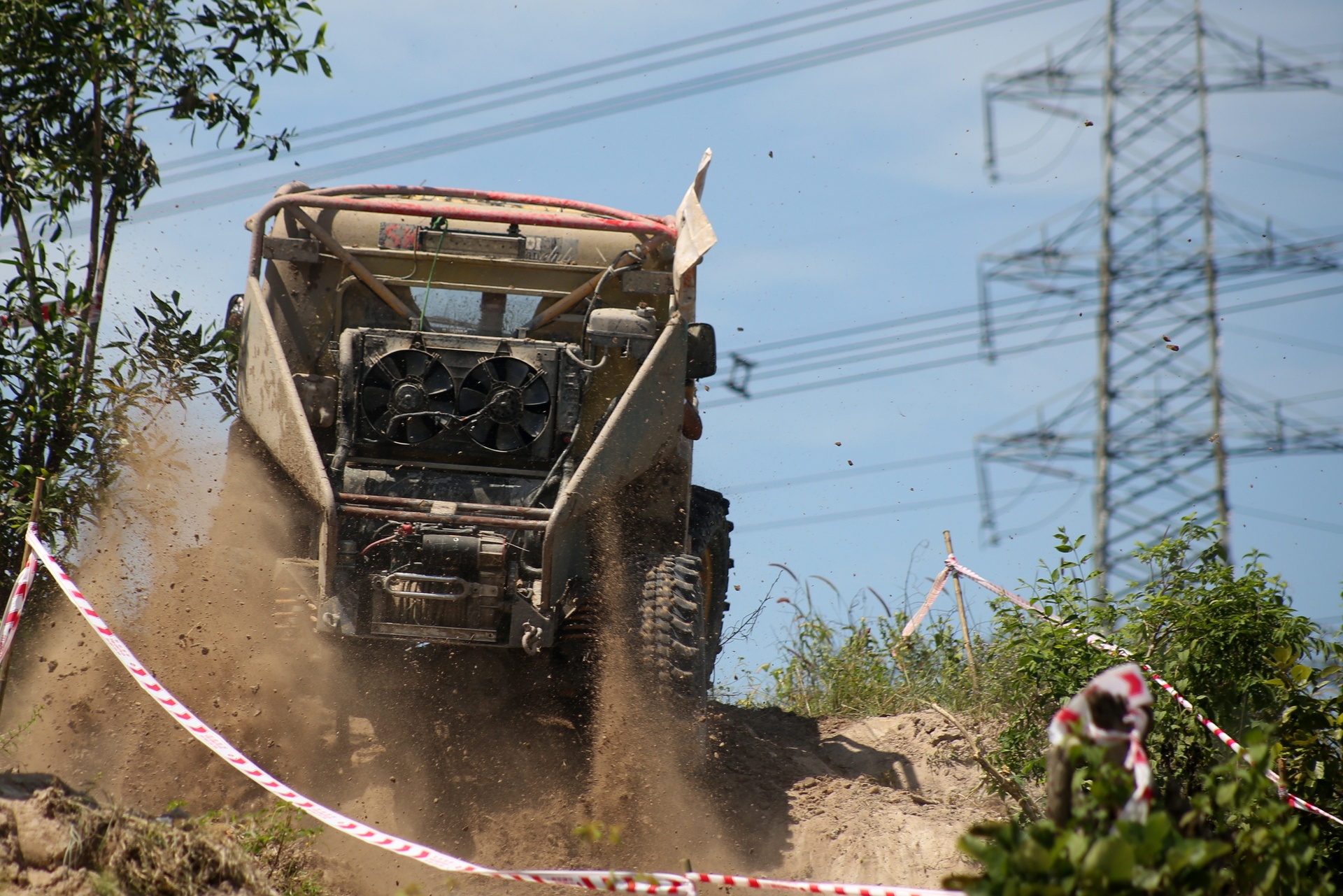 Ở bài thi vượt qua sình lầy, lái xe phải phóng thật nhanh để bánh xe không bị lún quá sâu dưới lớp bùn nhão, nhưng đa phần đều phải nhờ tới sự trợ giúp của tời gắn ở mũi xe.