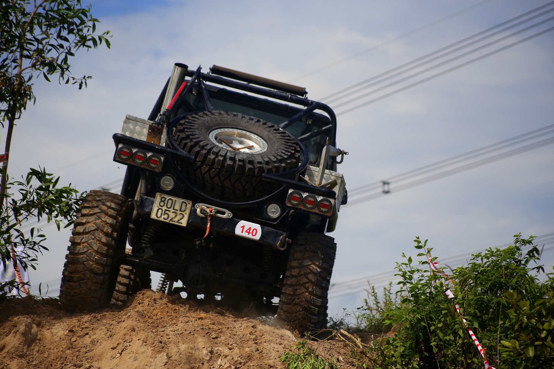 Nhiều chiếc xe đã lên được nửa dốc nhưng vẫn bị trượt quay lại bởi đất cát, không đủ độ bám.