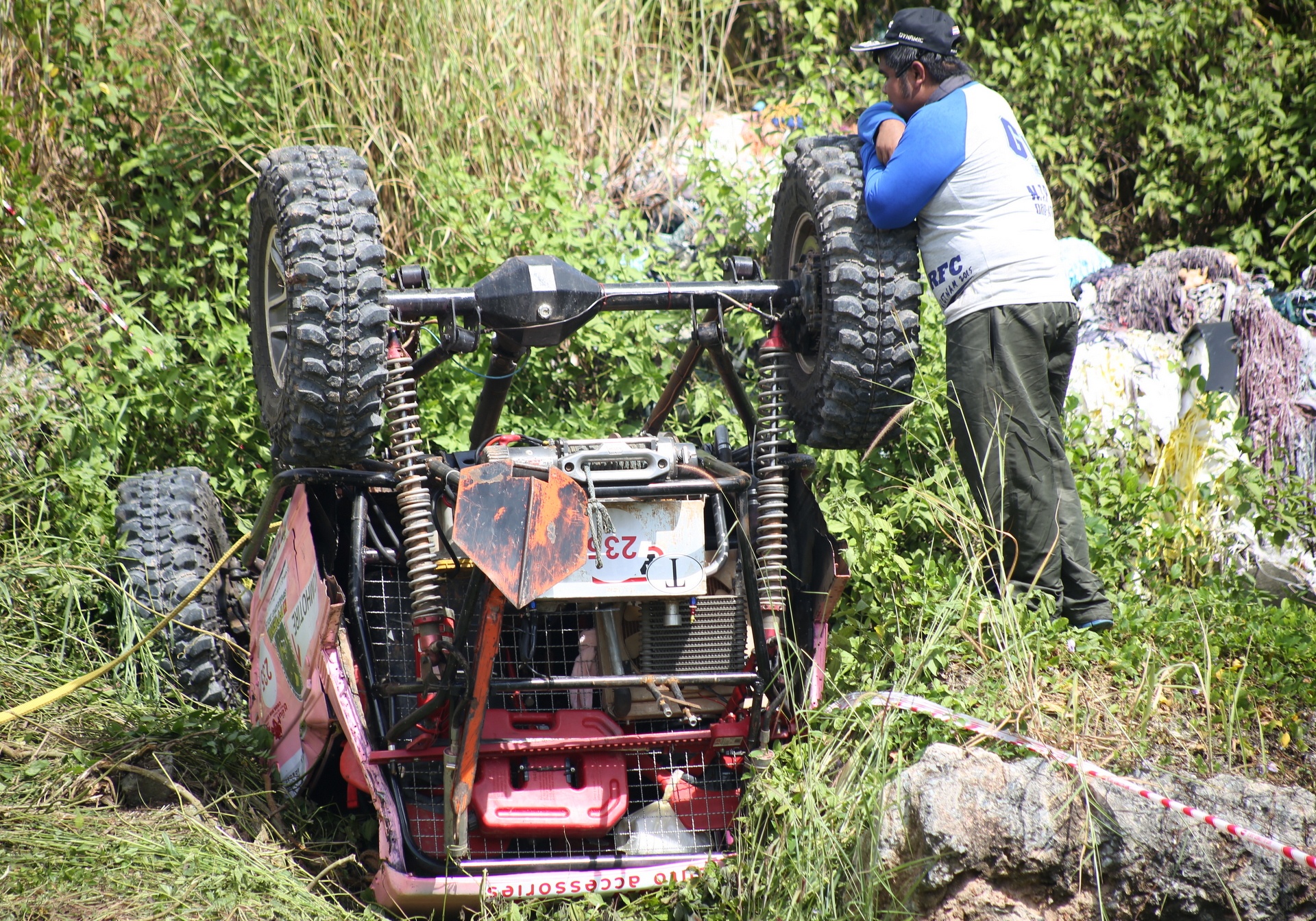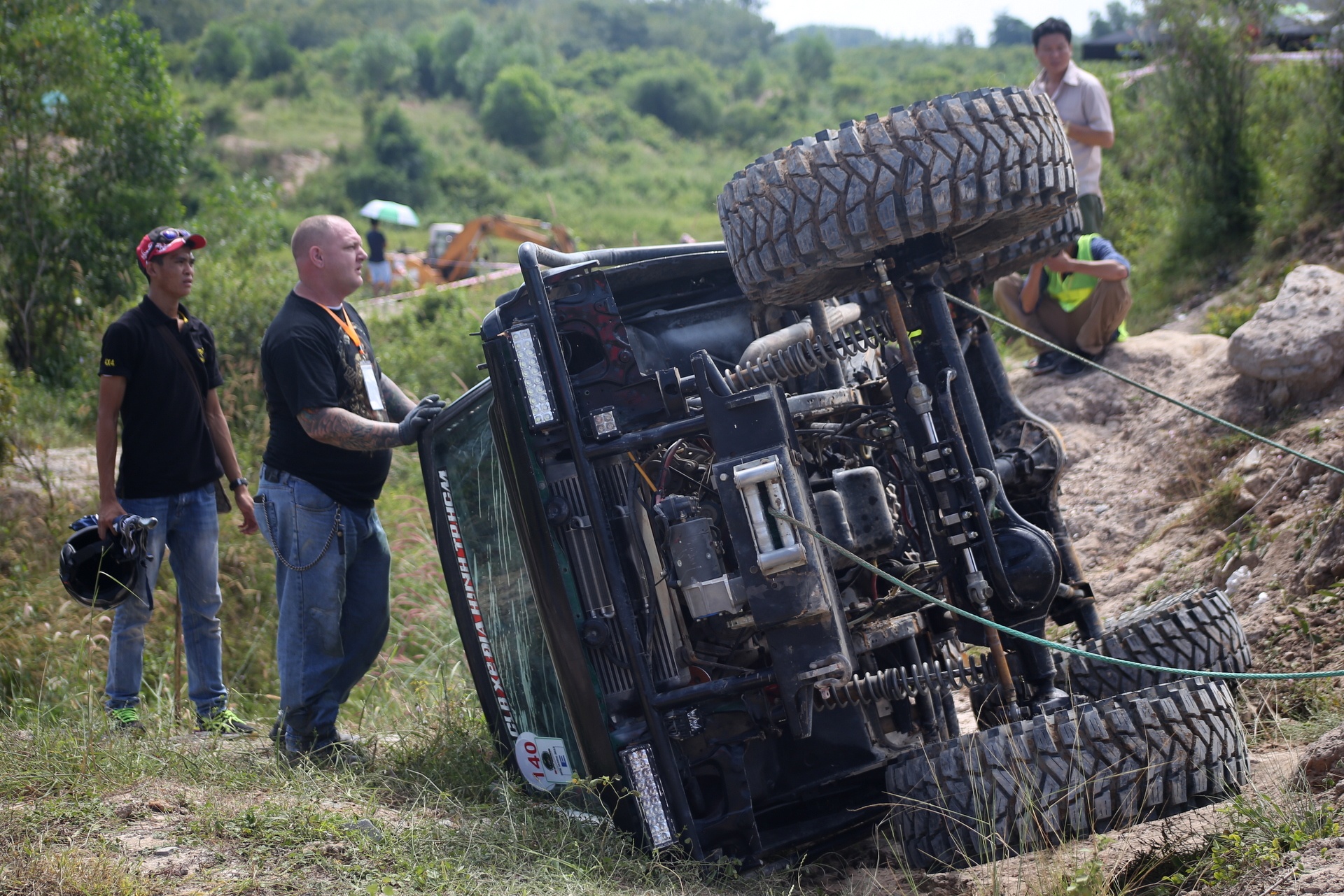Địa hình khó khiến cho nhiều tay đua không kiểm soát được chiếc xe. Ngoài vụ lật xe của hai tay đua nữ người Thái Lan, một số khác phải nhờ đến cứu hộ để giải cứu xe bị sa lầy.