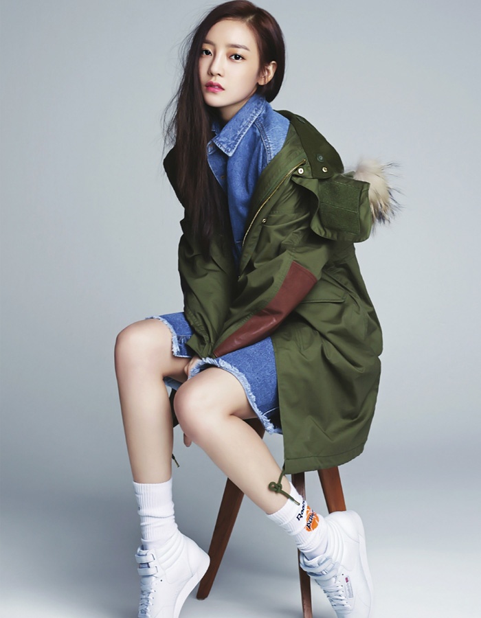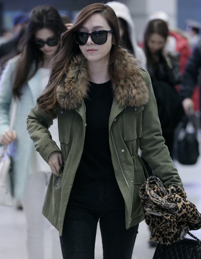 | Phong cách diện đồ cực thoải mái với jacket quân đội của Krystal. |