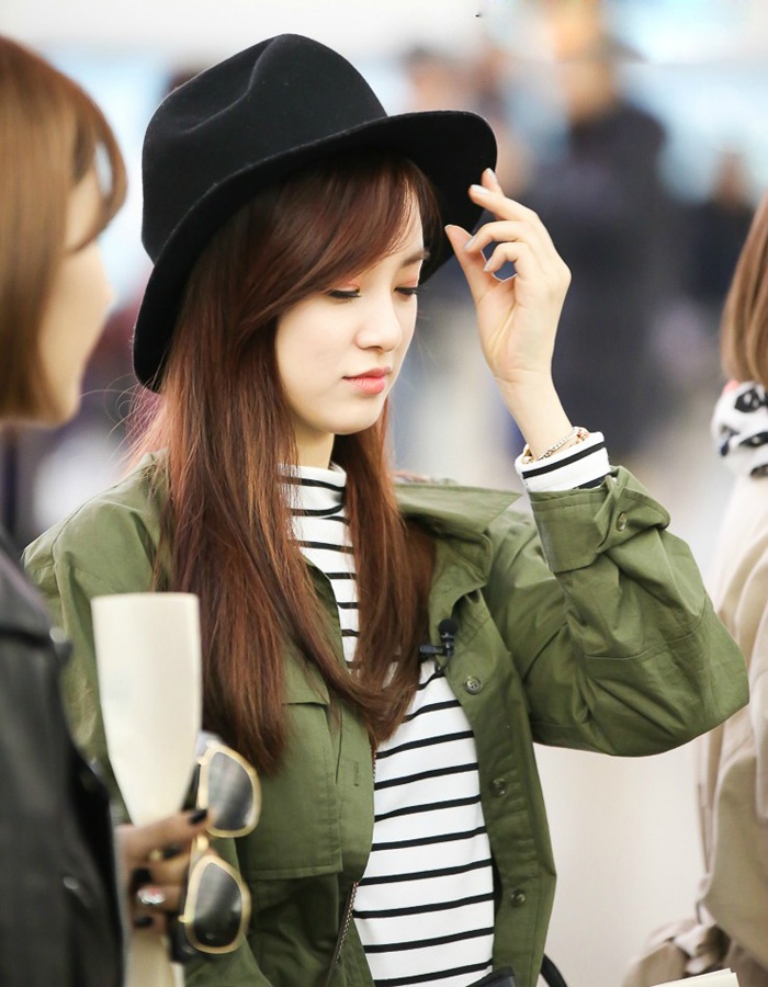 | Cô nàng trưởng nhóm SNSD – Taeyeon cá tính trong màu áo bộ đội. |