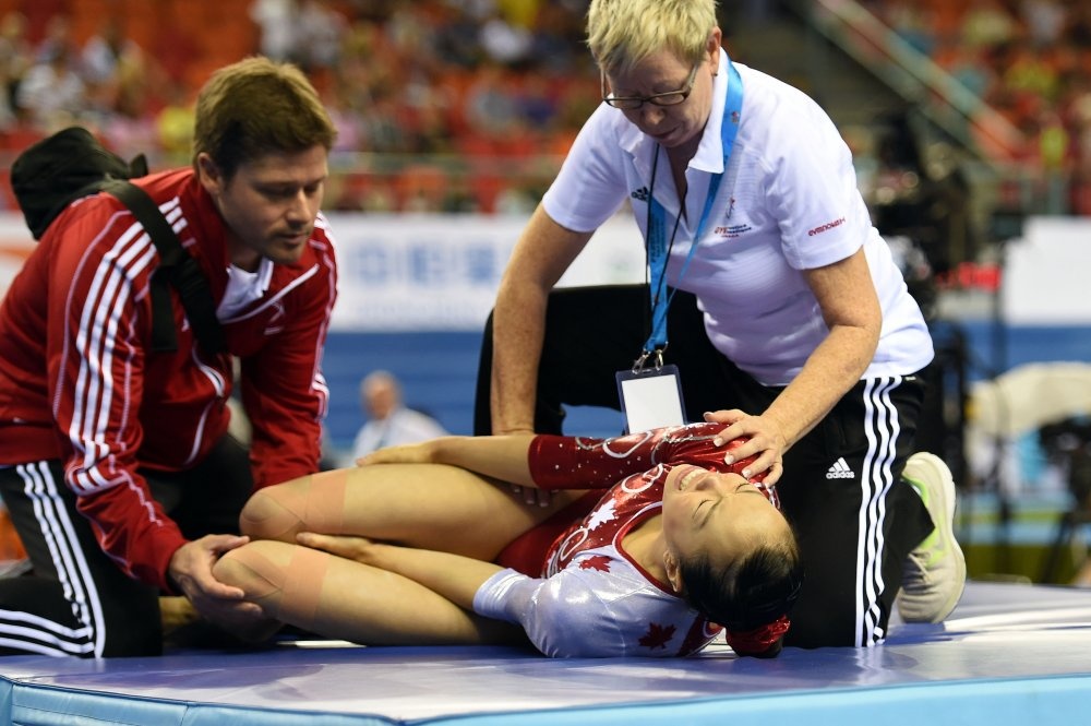 | Giải vô địch TDDC thế giới lần thứ 45 diễn ra tại Nam Ninh, Quảng Tây (Trung Quốc) đang bước vào những ngày tranh tài quyết liệt. Tuy nhiên, để vươn tới đỉnh vinh quang, các VĐV thường xuyên phải đối mặt với những chấn thương đau đớn, thậm chí hủy hoại cả sự nghiệp. |