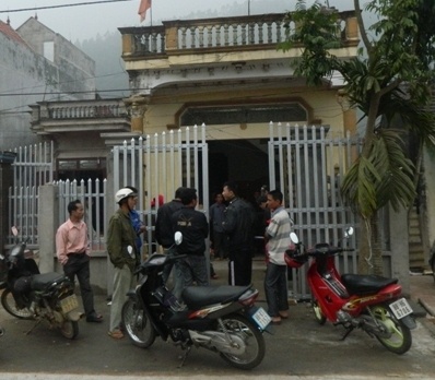| Người dân tập trung quanh căn nhà bị ném lựu đạn. |