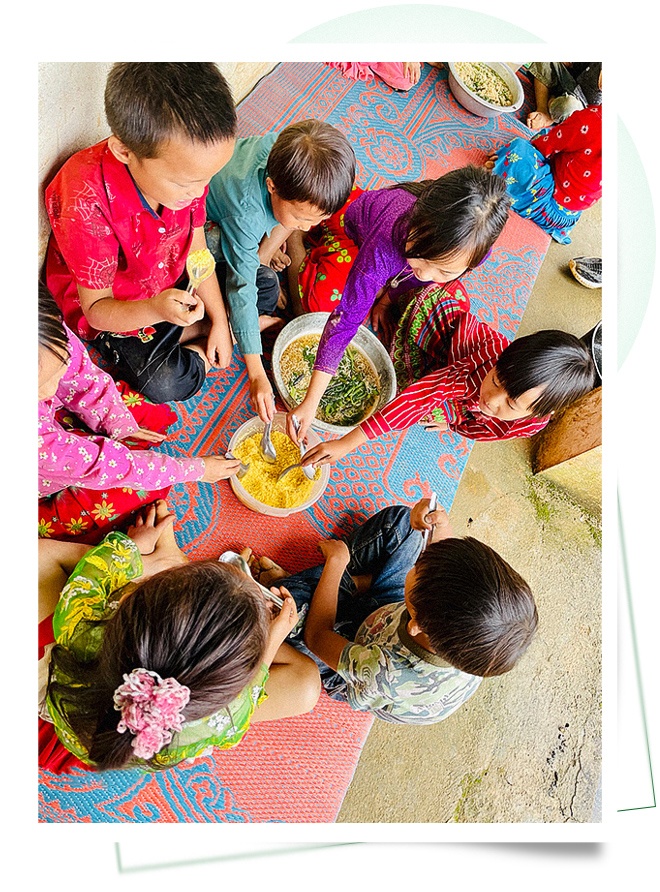 Ở nhiều điểm trường vùng cao trên khắp cả nước, các em nhỏ vẫn đến trường học con chữ với cái bụng đói, bữa ăn nhiều lúc chỉ có một ít mèn mén trộn với chút mỳ tôm được san sẻ từ suất ăn của thầy giáo.