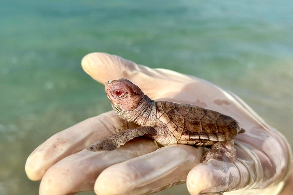 Trong quá trình bảo tồn, hàng năm VQG Côn Đảo ghi nhận khoảng 3-4 tổ rùa bạch tạng nhưng hầu hết cá thể mang dị tật bẩm sinh như không có mắt, chân bơi ngắn/dài hơn, màu mắt chỉ hơi hồng, mất một bên mắt... Đây là lần đầu tiên các nhân viên bảo tồn được chứng kiến rùa bạch tạng có đôi mắt đỏ trong suốt và linh hoạt đến vậy.