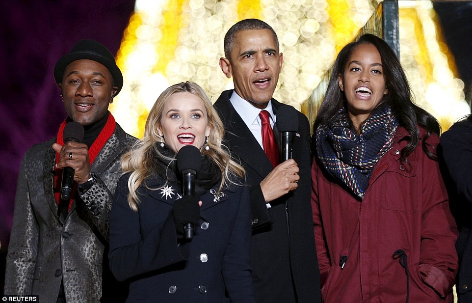 Aloe Blacc, nữ diễn viên Reese Witherspoon cùng 2 con gái trong dịp Giáng sinh 2015. |