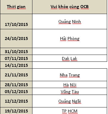 Để biết thêm chi tiết về thời gian và địa điểm thực hiện chương trình, độc giả liên hệ tổng đài tư vấn miễn phí 1800 6678 hoặc truy cập website: www.ocb.com.vn