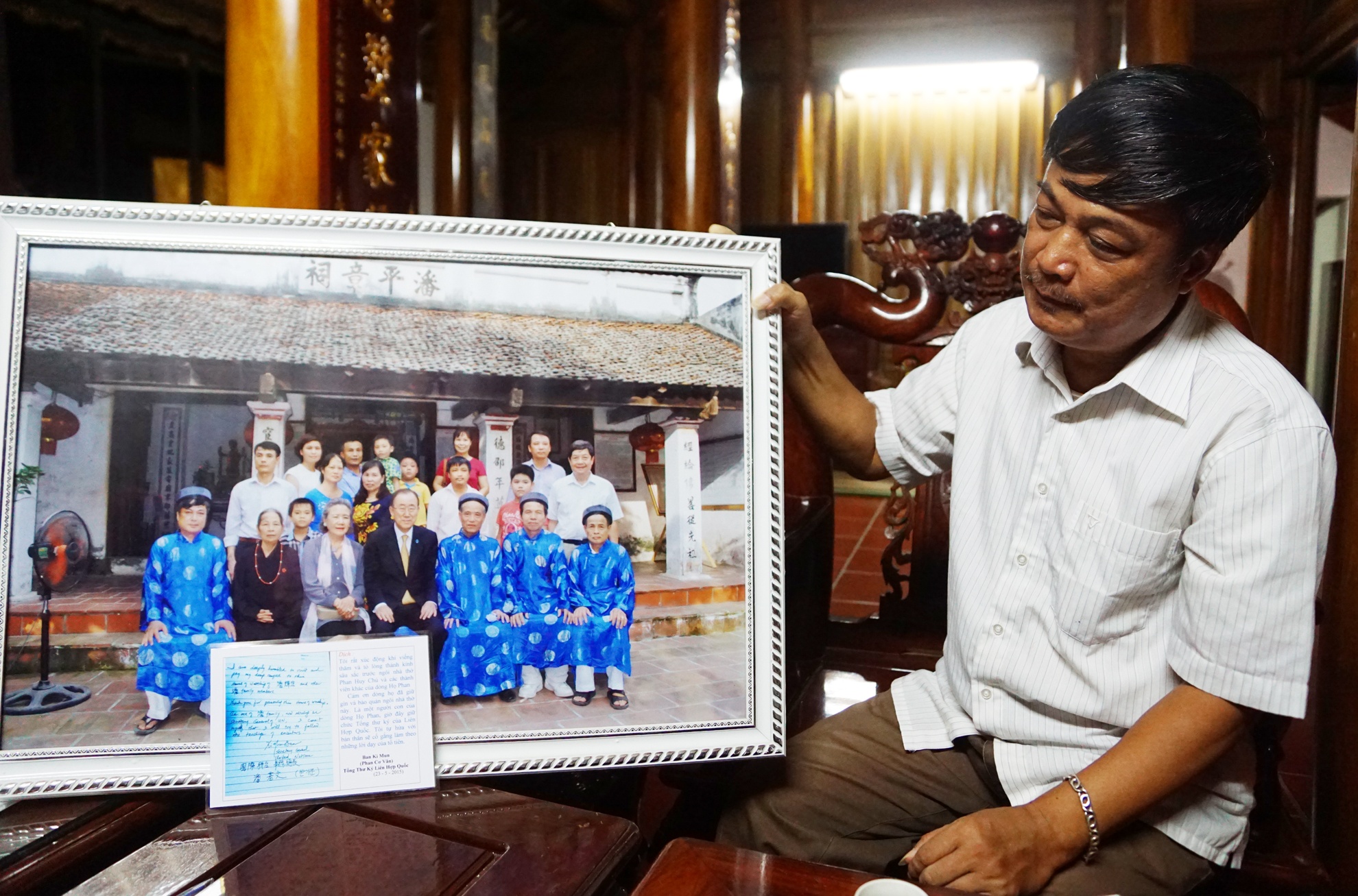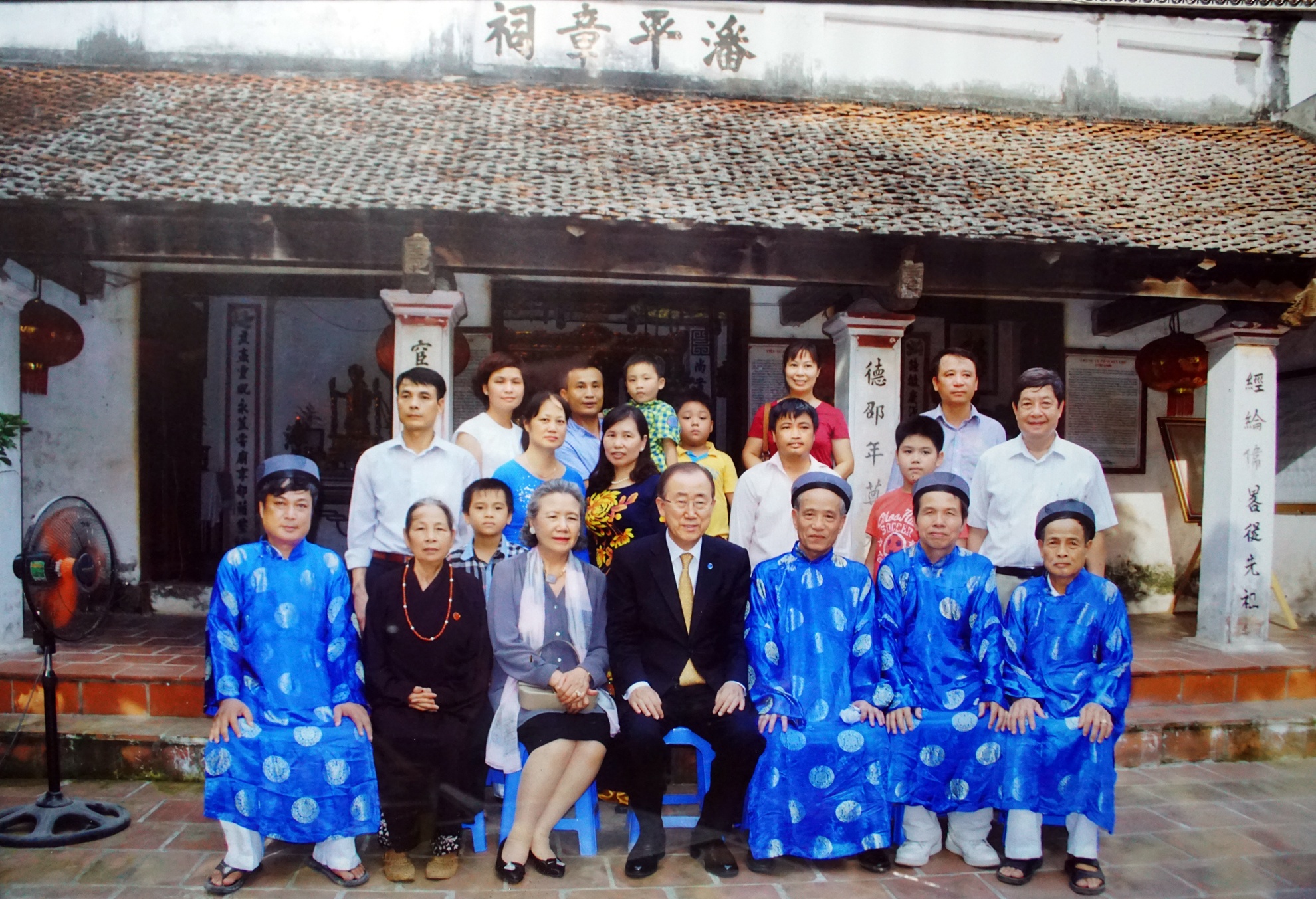 Bức ảnh chụp ông Ban Ki-Moon và phu nhân cùng dòng họ Phan Huy tại nhà thờ họ tại xã Sài Sơn.