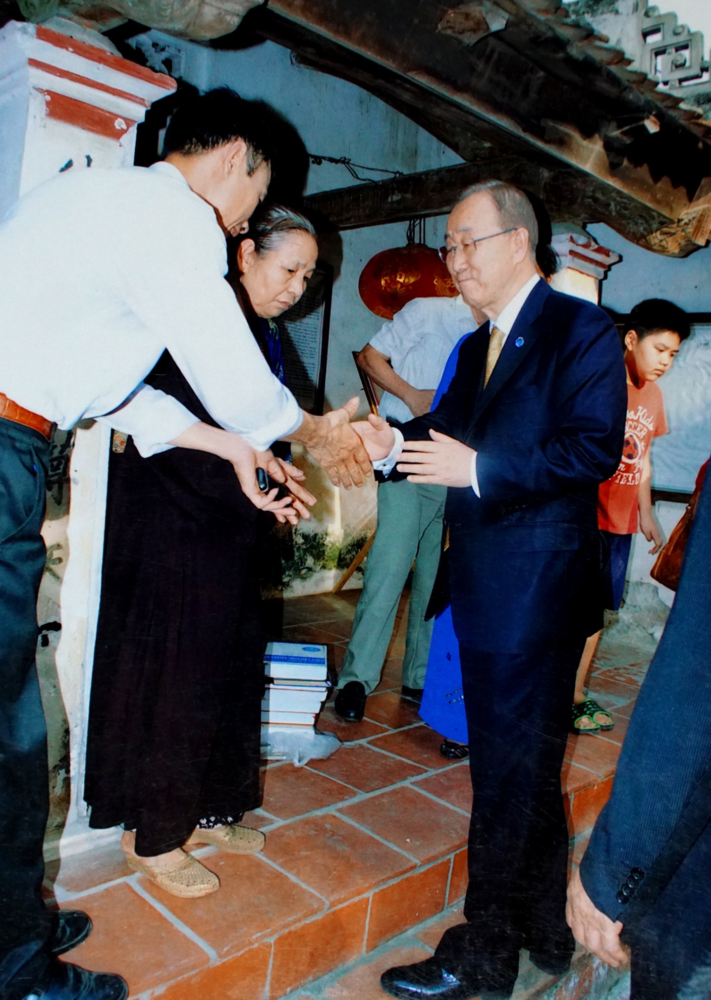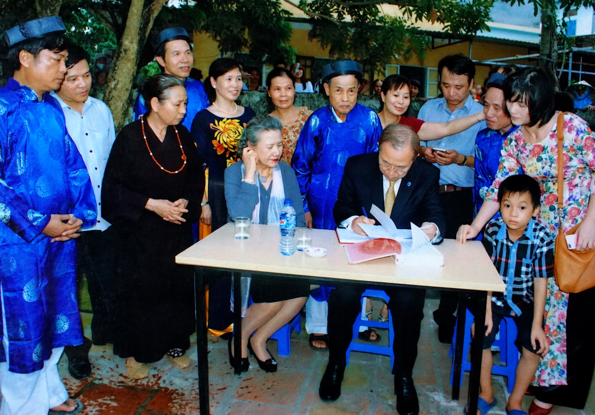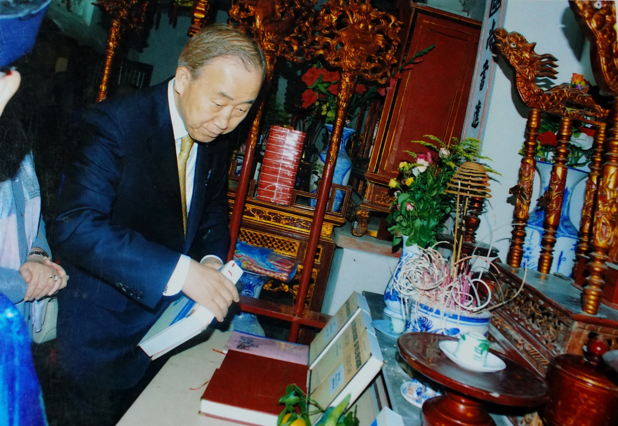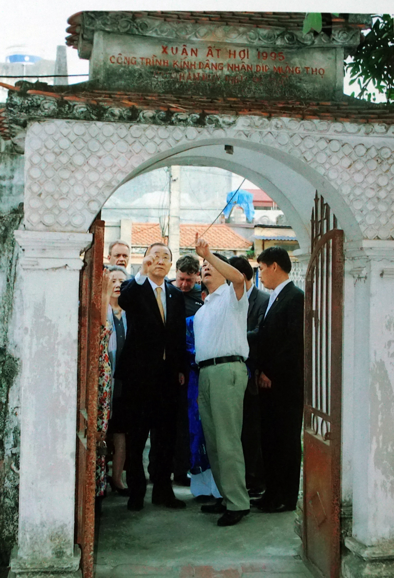 Khoảng 16h ngày 23/5, ông Ban Ki-moon (Tổng thư ký Liên Hợp Quốc) tới thăm nhà thờ họ Phan Huy ở xã Sài Sơn (Quốc Oai, Hà Nội).