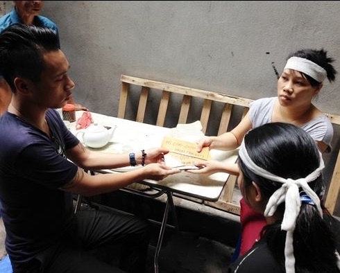 | Viết Sơn trao tận tay số tiền cho người nhà nạn nhân. |