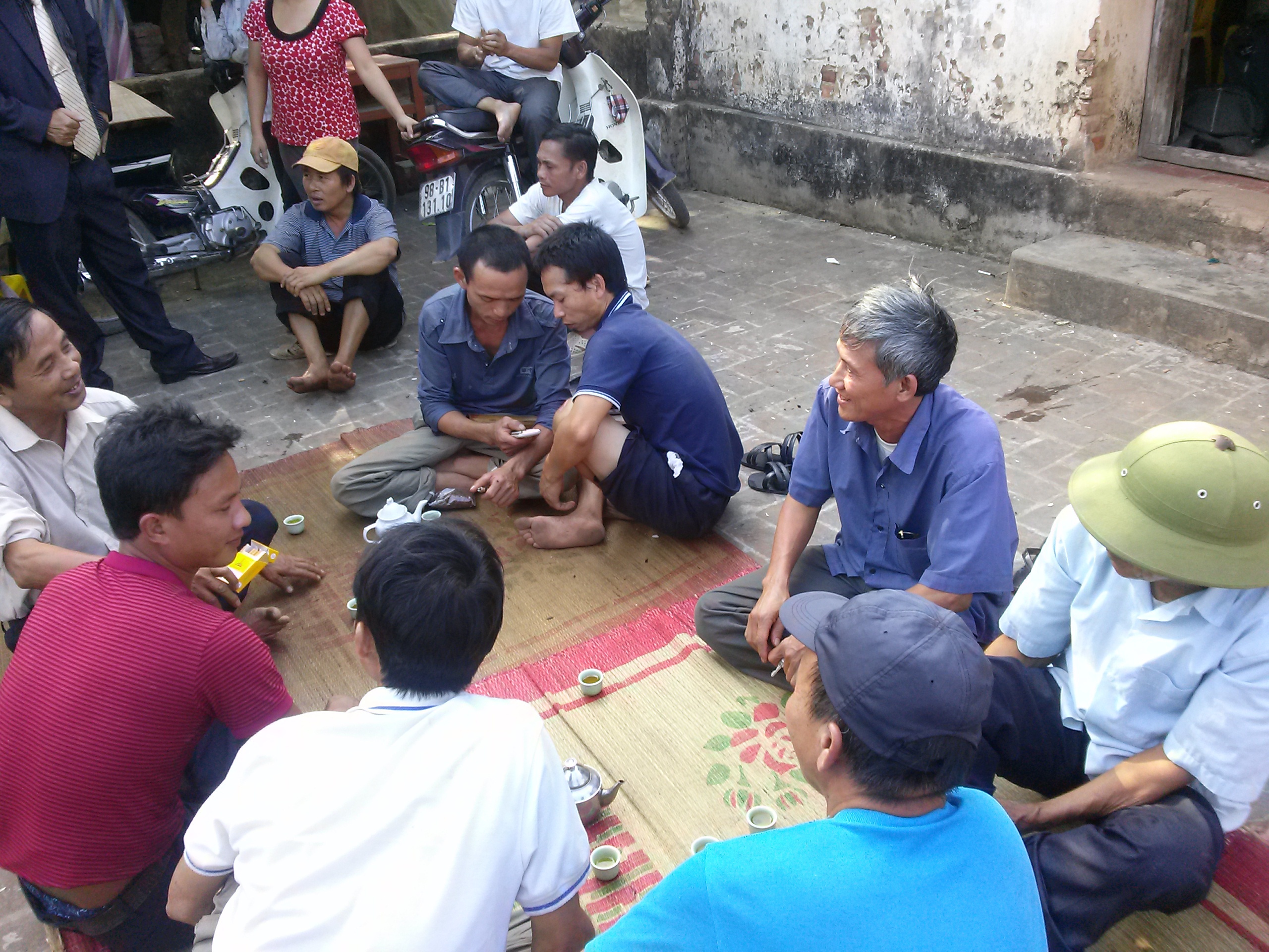 | Người dân đến nhà ông Chấn hỏi thăm. |