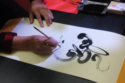 | Ông đồ 9X tỉ mỉ từng nét chữ. |