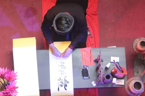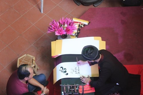 | Gần trăm bạn trẻ xứ Huế đã có mặt tại địa điểm tổ chức từ rất sớm để xin và giao lưu cùng ông đồ trẻ 9X, điển trai, có tài thư pháp điêu luyện, từng hút khách ở đất Sài Thành trong chương trình Phố ông đồ diễn ra tại nhà văn hóa Thanh niên TP HCM. |