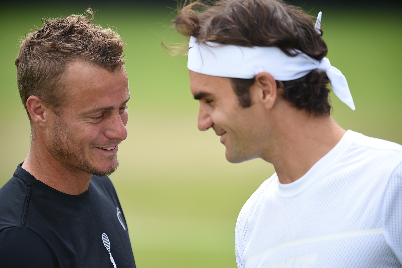| Fedex vui vẻ tập luyện cùng cựu số 1 thế giới Lleyton Hewitt. Lão tướng người Australian tham dự Wimbledon bằng suất đặc cách (wild-card) và dự định sẽ từ giã sự nghiệp banh nỉ sau Australian Open 2016. |