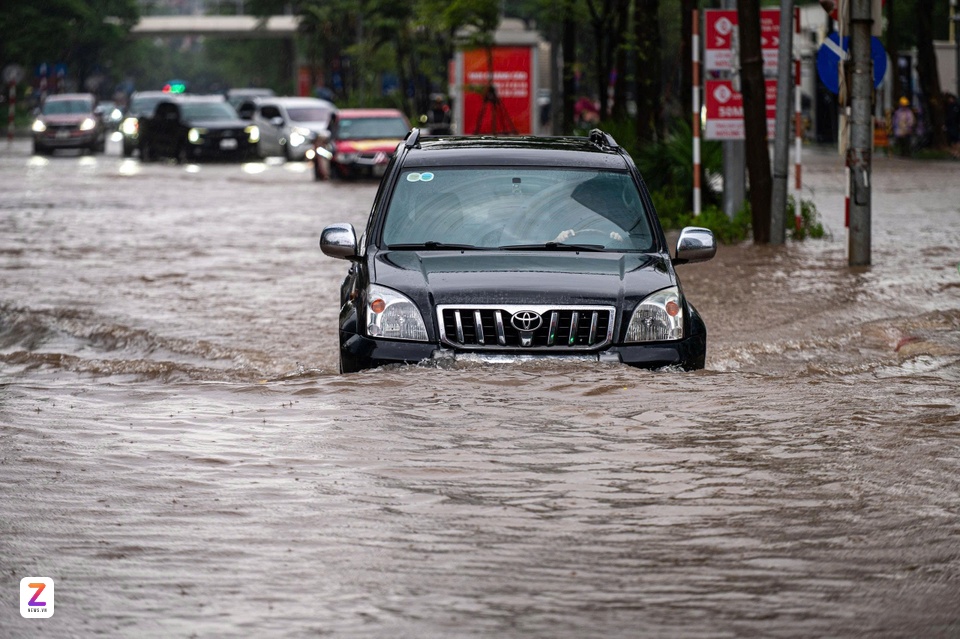Ôtô lội nước tại TP Hà Nội sau mưa ngập. Ảnh: Việt Hà. |