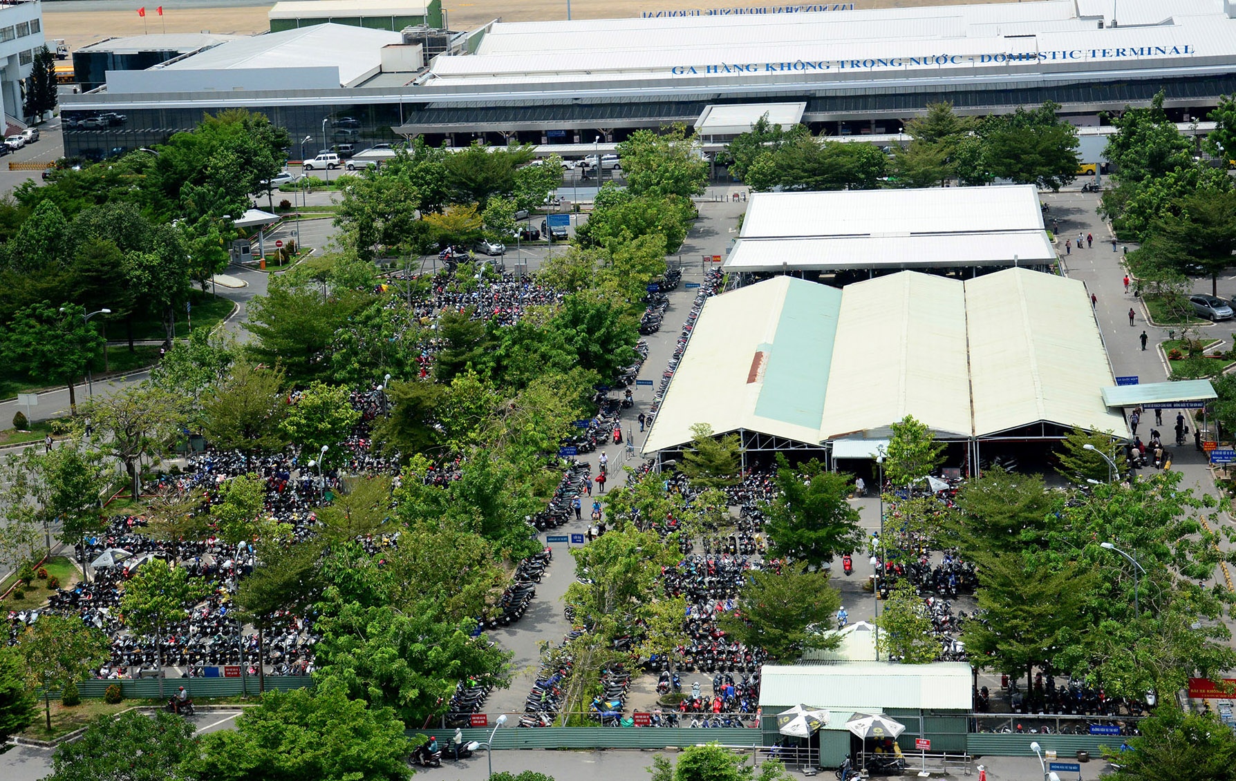 | Khu vực để xe máy trong nhà ga sân bay cũng luôn chật cứng. |