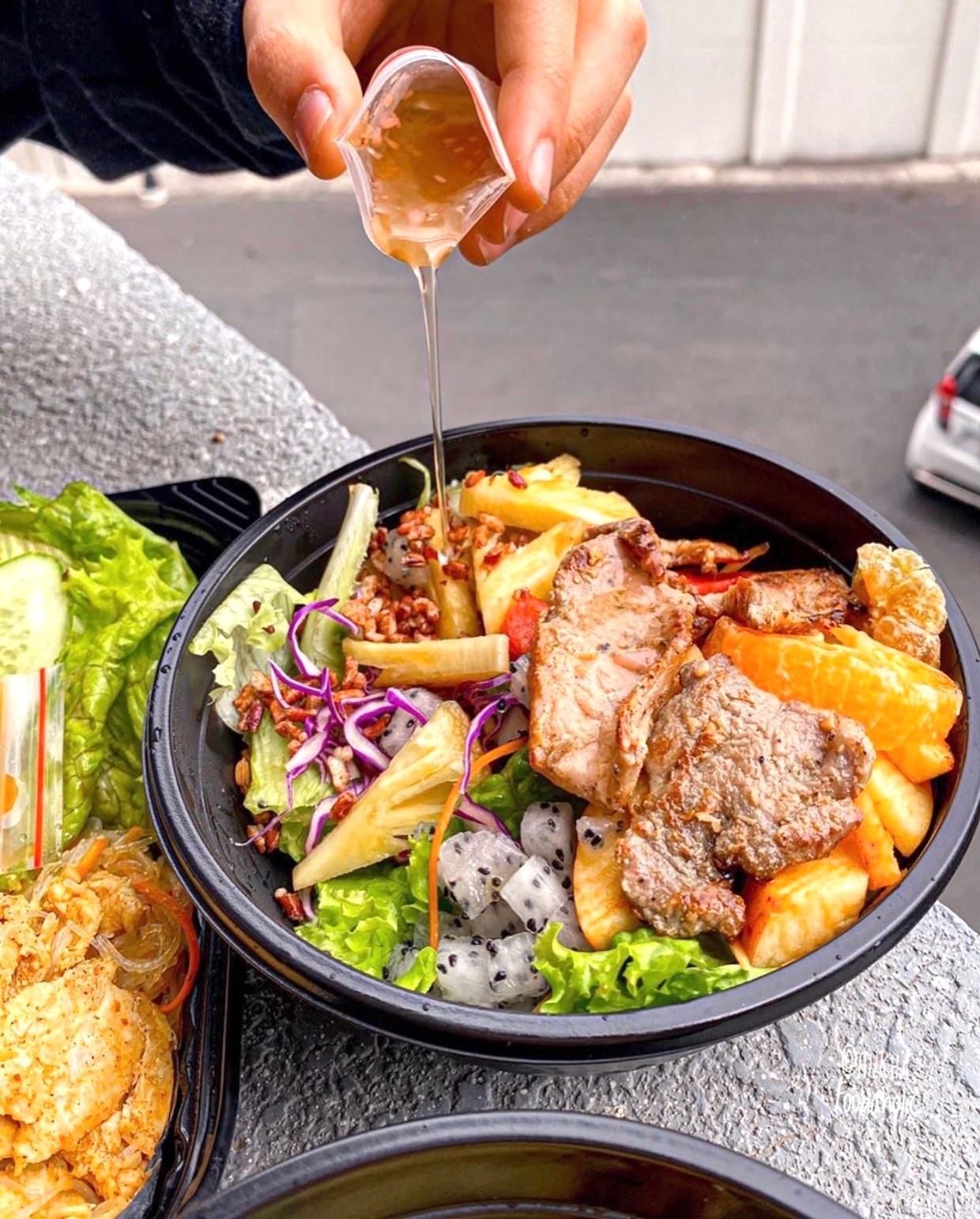 | Thực khách sẽ được thưởng thức loạt món ngon trên khi gọi đặt hàng tại Mi En House. Ngoài ra, bạn cũng đừng bỏ lỡ cơ hội trải nghiệm các món salad tại đây. Salad trái cây, heo áp chảo hay thanh cua... sẽ giúp bữa ăn của bạn thêm phần chất lượng và "chuẩn healthy". Mức giá các món dao động từ 45.000-75.000 đồng. Ảnh: Mienhouse, Hukha.Foodaholic. |