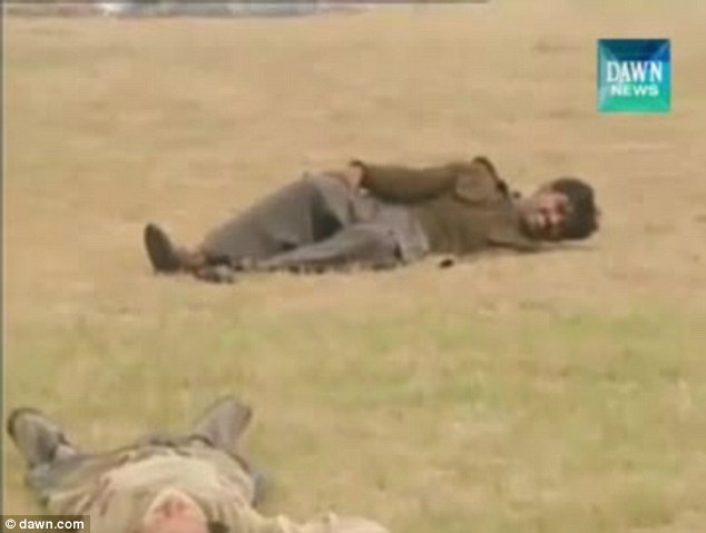 | Một giảng viên tại thành phố Multan, tỉnh Punjab, giả làm người bị thương. Ngoài việc học cách sử dụng súng và xử lý tình huống với bom, các học sinh còn được trang bị kiến thức về cách hỗ trợ những người bị thương và thoát khỏi hiện trường an toàn. Ảnh: Dawn.com |