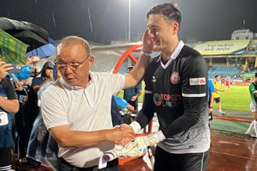 HLV Park Hang-seo cùng các cộng sự ở tuyển Việt Nam đã xuống sân chúc mừng Đặng Văn Lâm và động viên một số học trò sau trận CLB Bình Định thắng luân lưu Viettel 5-3 tối 8/9.