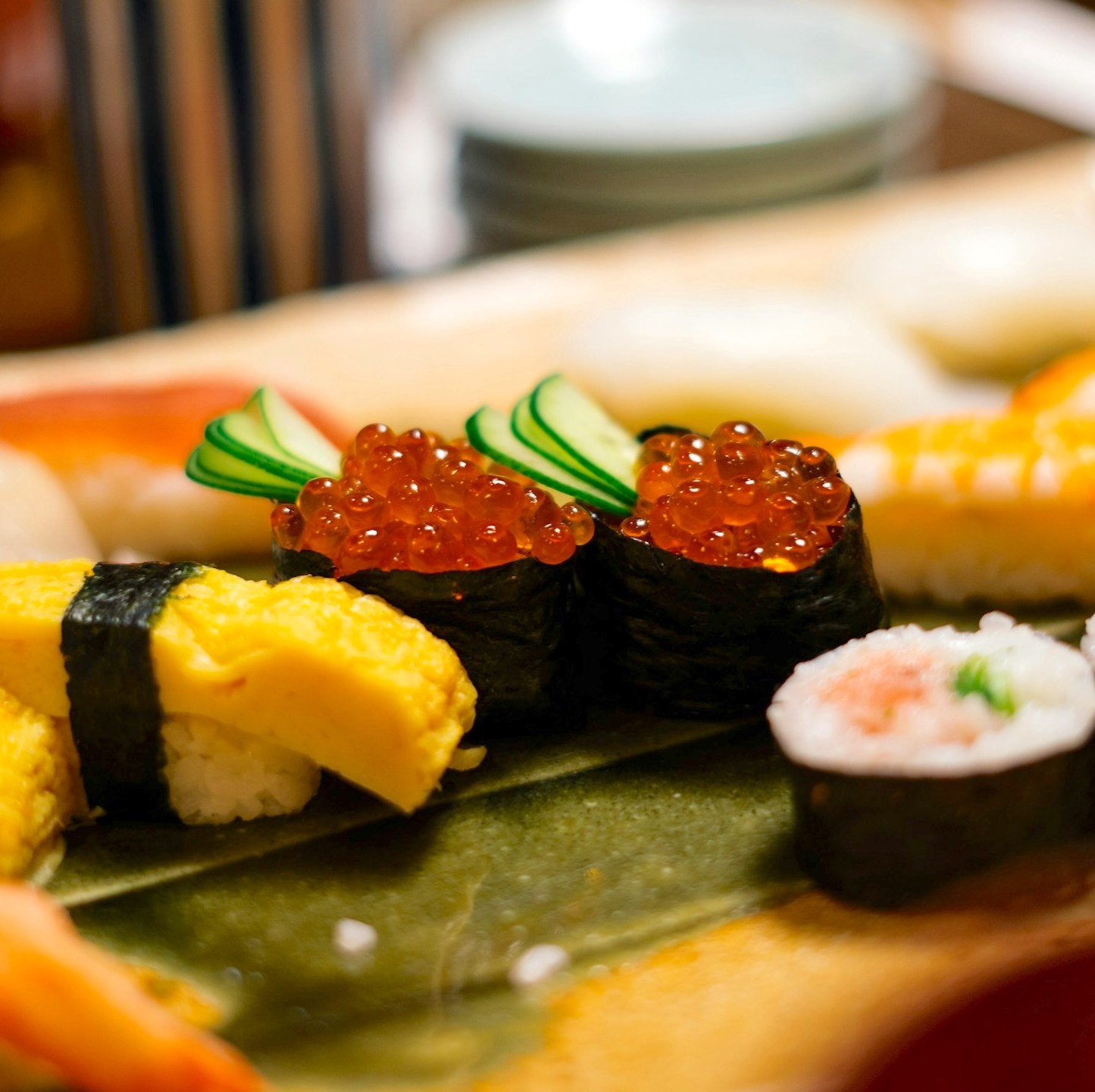 Điểm sáng trong thực đơn chính là nguyên liệu cá tươi nhập từ chợ thuỷ sản nổi tiếng Tsukiji, Nhật Bản. Bên cạnh đó, phải kể đến sushi với phần gạo ngon, không quá tơi.