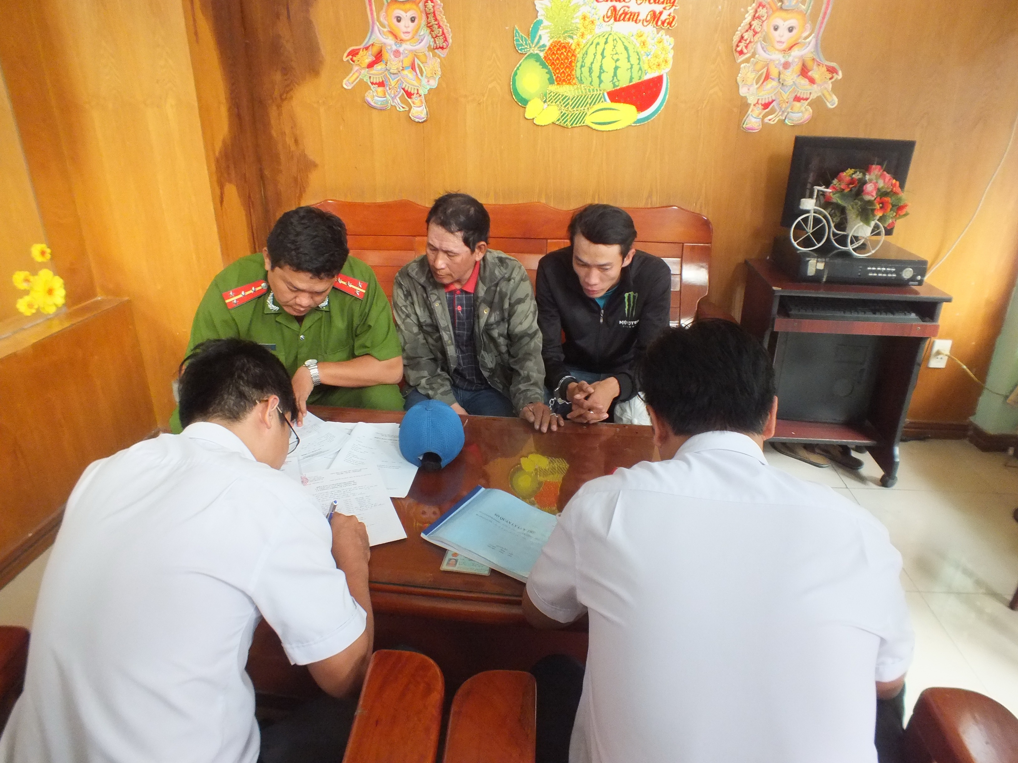 | Lực lượng chức năng đang ghi lời khai của Hải và đồng bọn. Ảnh: Khánh Trung. |