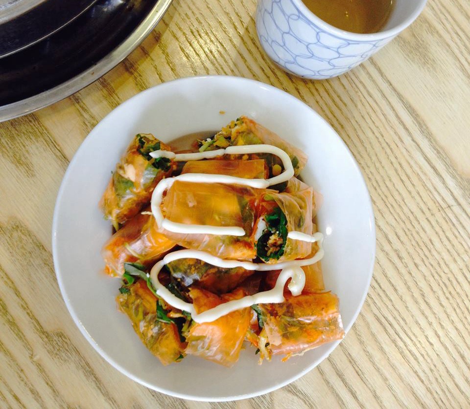 | Menu quán cũng có điểm vài món "lạc tông" như há cảo. Vỏ gói chưa chặt tay, nhưng phần nhân ngon. |