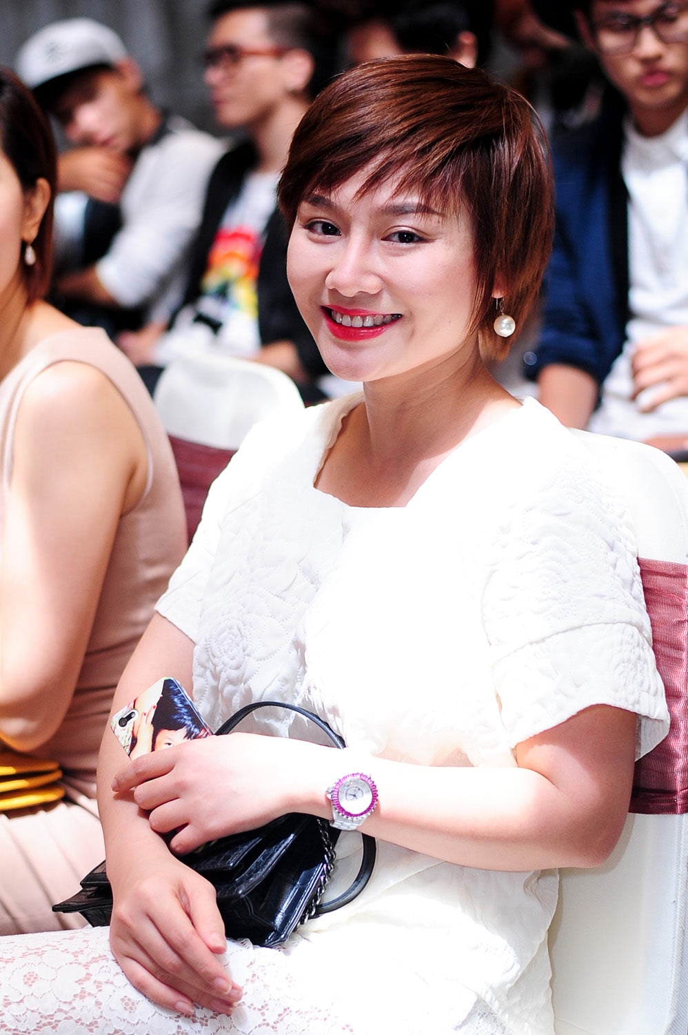 | Kiwi Ngô Mai Trang mặc gợi cảm đến họp báo của Pha Lê. Trong Cuộc đua kỳ thú, đội Xanh Dương của vợ chồng cô nhận được nhiều ủng hộ từ khán giả. |