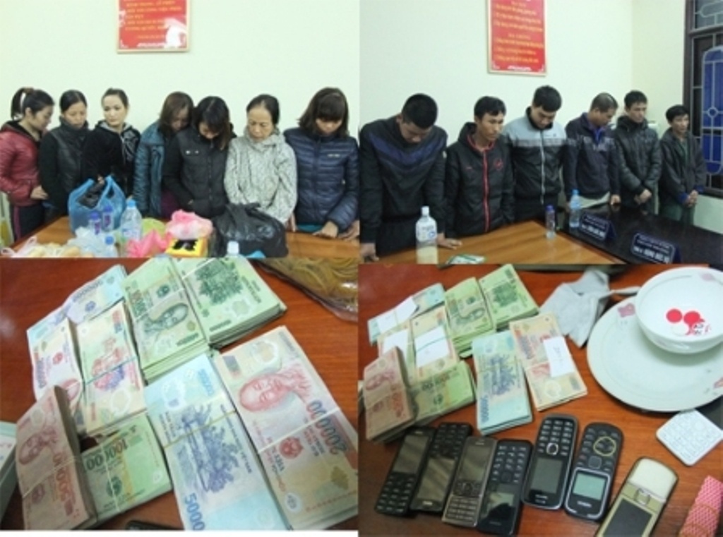 Sau thời gian theo dõi và lập án đấu tranh, 17h ngày 17/10 Phòng Cảnh sát Hình sự (Công an tỉnh Thanh Hóa) đã bắt quả tang 13 đối tượng (7 nữ, 6 nam) đang đánh bạc dưới hình thức sóc đĩa tại nhà đối tượng Nguyễn Văn Tuấn, sinh năm 1961 ở xã Quảng Yên, huyện Quảng Xương.