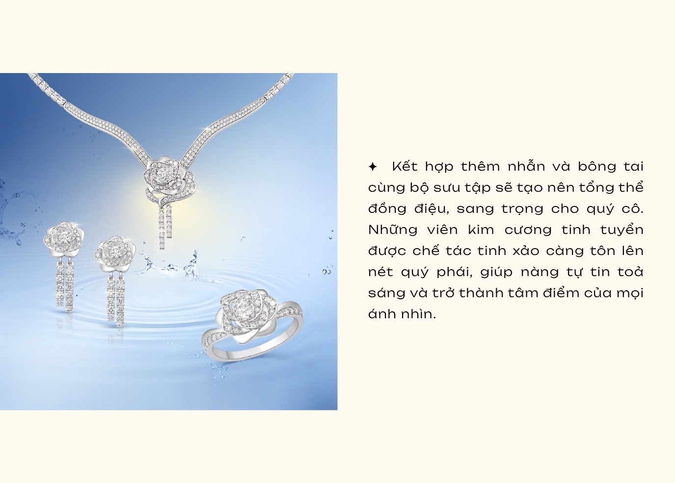 Vì vậy, nhu cầu trang sức của phái đẹp ngày nay không chỉ dừng lại ở vẻ đẹp thuần túy, mà còn đòi hỏi sự linh hoạt, phù hợp trong mọi hoàn cảnh. Bộ sưu tập trang sức Audax Rosa của PNJ với thiết kế tinh tế, sang trọng và đa ứng dụng trở thành giải pháp lý tưởng, giúp phái đẹp dễ dàng phối cùng nhiều phong cách trang phục chỉ với một bộ trang sức. Dù ở môi trường công sở hay sự kiện quan trọng, bộ trang sức này giúp nàng linh hoạt “chuyển vai”, tỏa sáng theo cách riêng trong mọi khoảnh khắc cuộc sống.