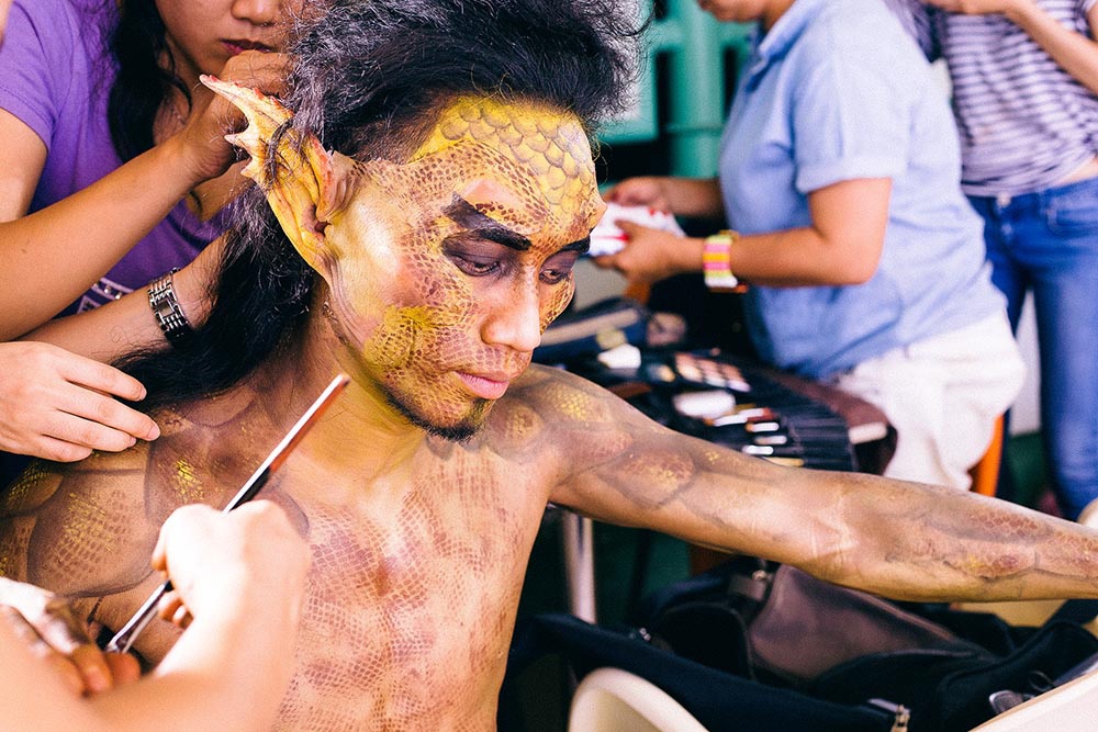 | Hoá thân vào nhân vật hoàn toàn khác hình ảnh quen thuộc, Phạm Anh Khoa bỏ nửa ngày hoá trang để thể hiện đúng ý tưởng ban đầu. |